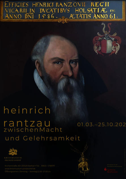 Statthalter dreier Könige, Diplomat, Gelehrter, „Fugger des Nordens“, Bauherr, Mäzen der Kultur und der Wissenschaften, Wohltäter – der Humanist Heinrich Rantzau (1526–1598) war ein Mensch mit vielfältigen Talenten. Anlässlich des 500-Jahre Heinrich-Rantzau-Jubiläumsjahres begibt sich das Kreismuseum Prinzeßhof auf die Spuren dieses außergewöhnlichen Mannes, der seiner Zeit in vielerlei Hinsicht weit voraus war und die Politik, Wissenschaft und Kultur der Herzogtümer Schleswig und Holstein im gemeinhin bekannten „Rantzauschen Zeitalter“ prägte.
